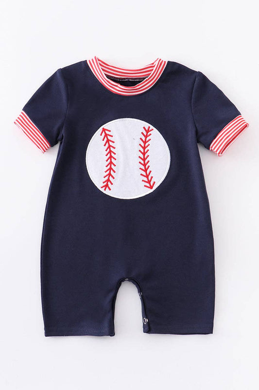 Navy baseball applique boy romper