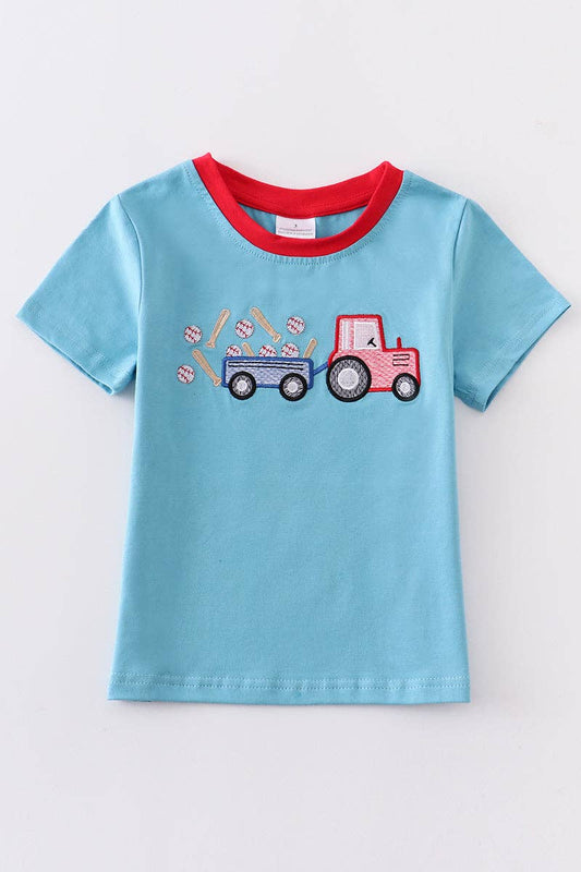 CONSTRUCTION TRUCK APPLIQUE NAVY BLUE ROMPER W/ MATCHING TEE