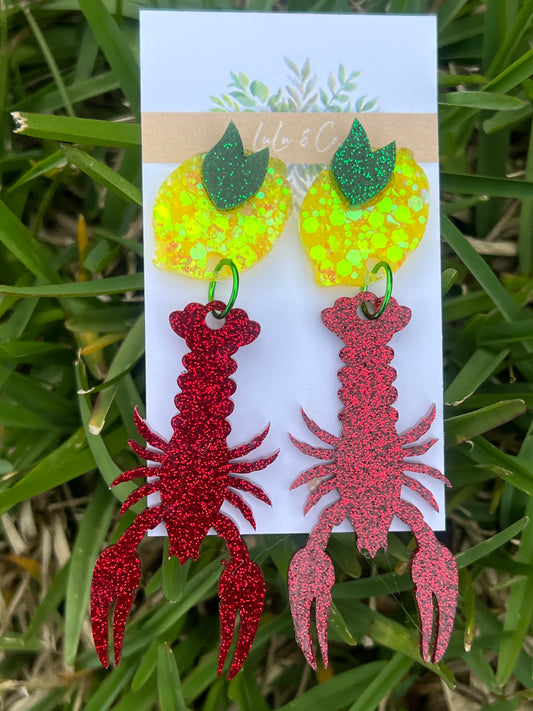 Crawfish glitter & lemon dangles