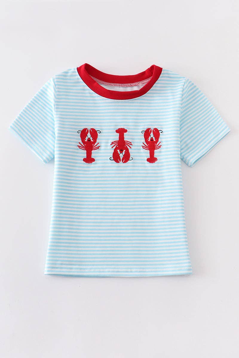 Blue stripped crawfish embroidery boy top