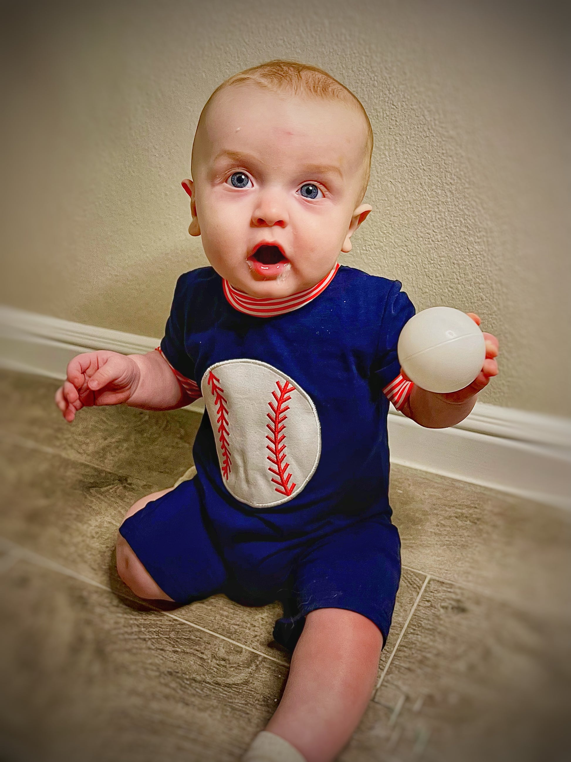 Get your little slugger ready for game day with our navy baseball applique boy romper! Made with 95% cotton and 5% spandex, this romper is as comfortable as it is adorable. With its classic baseball stitching and cute applique design, your little one will be the MVP of any playdate.