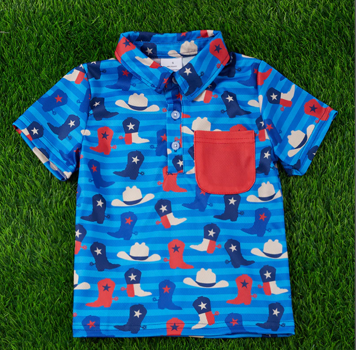PATRIOTIC BOOT PRINTED BOYS COLLARED SHIRT