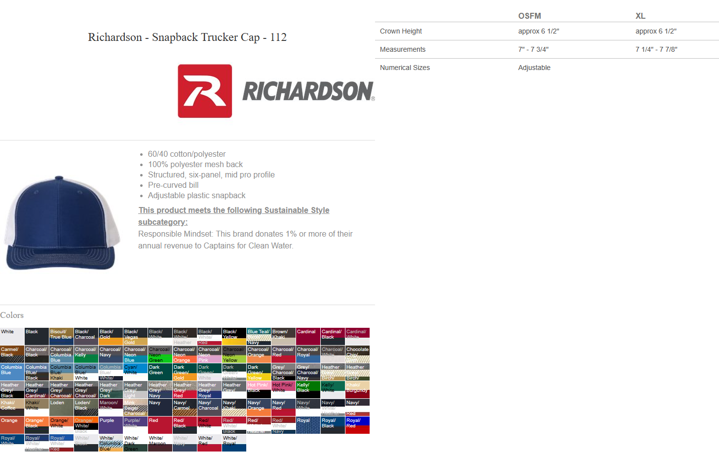 Richardson Snapback Trucker Cap 112