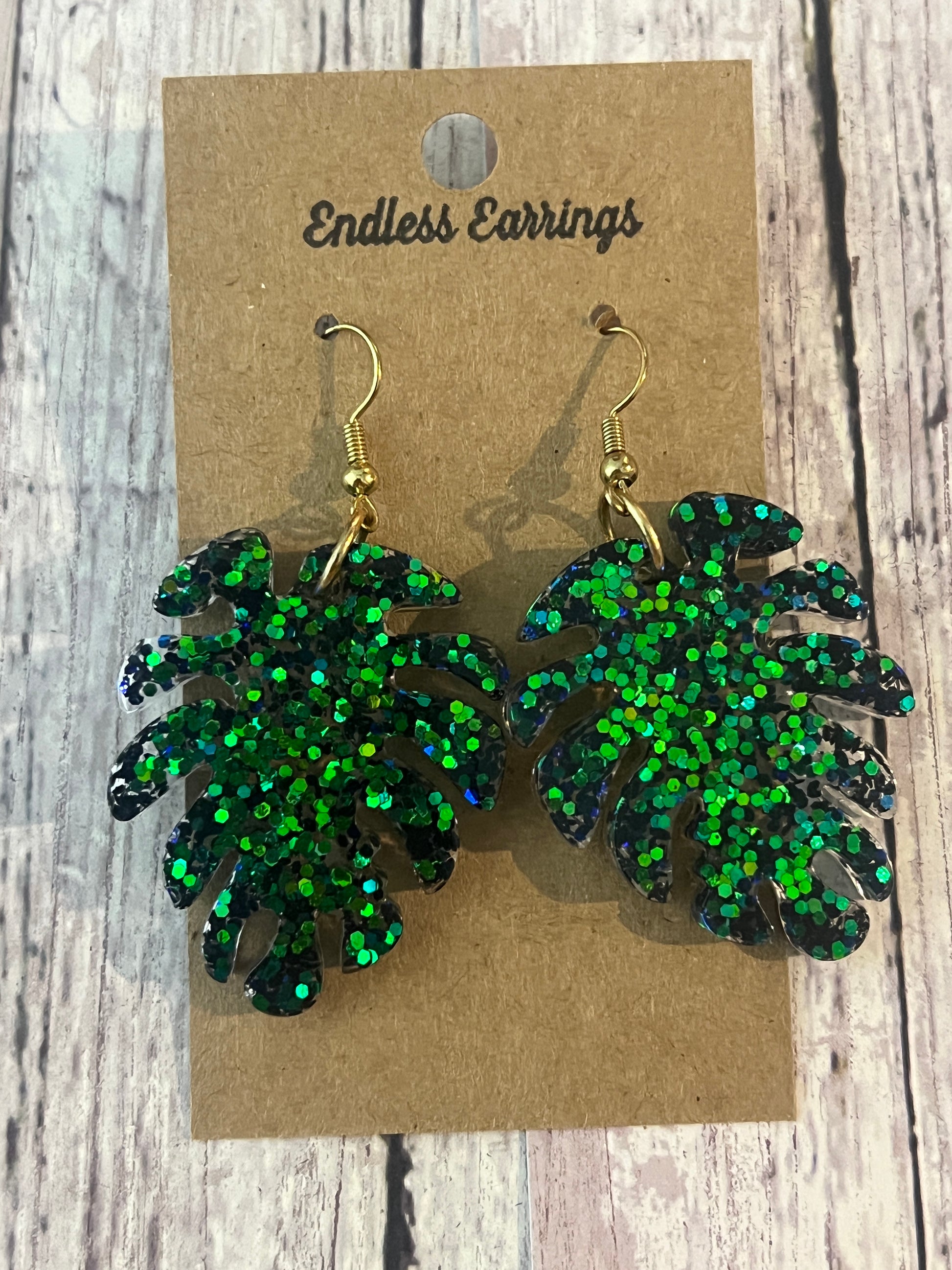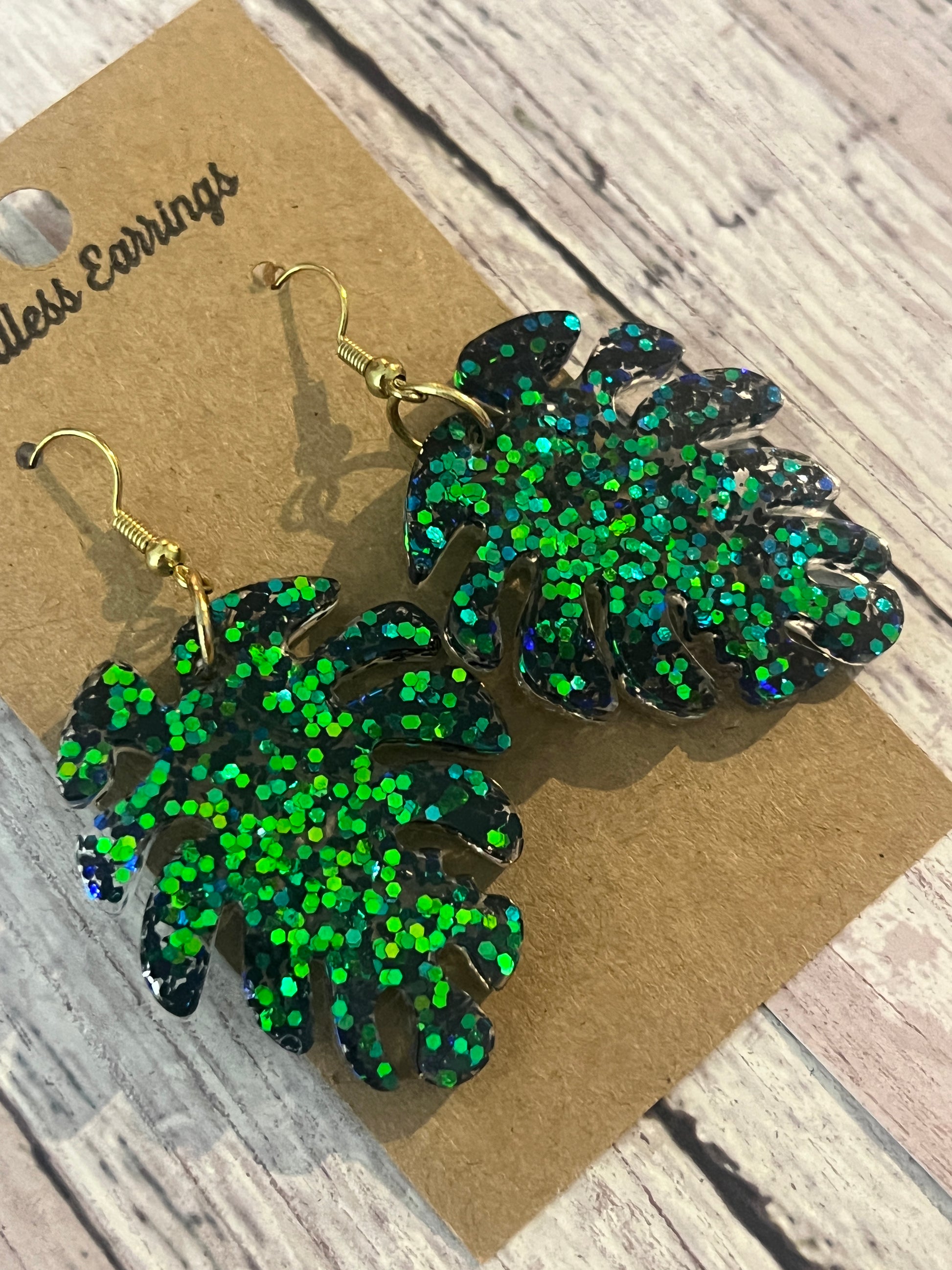 Sparkle green leaf dangle Earrings