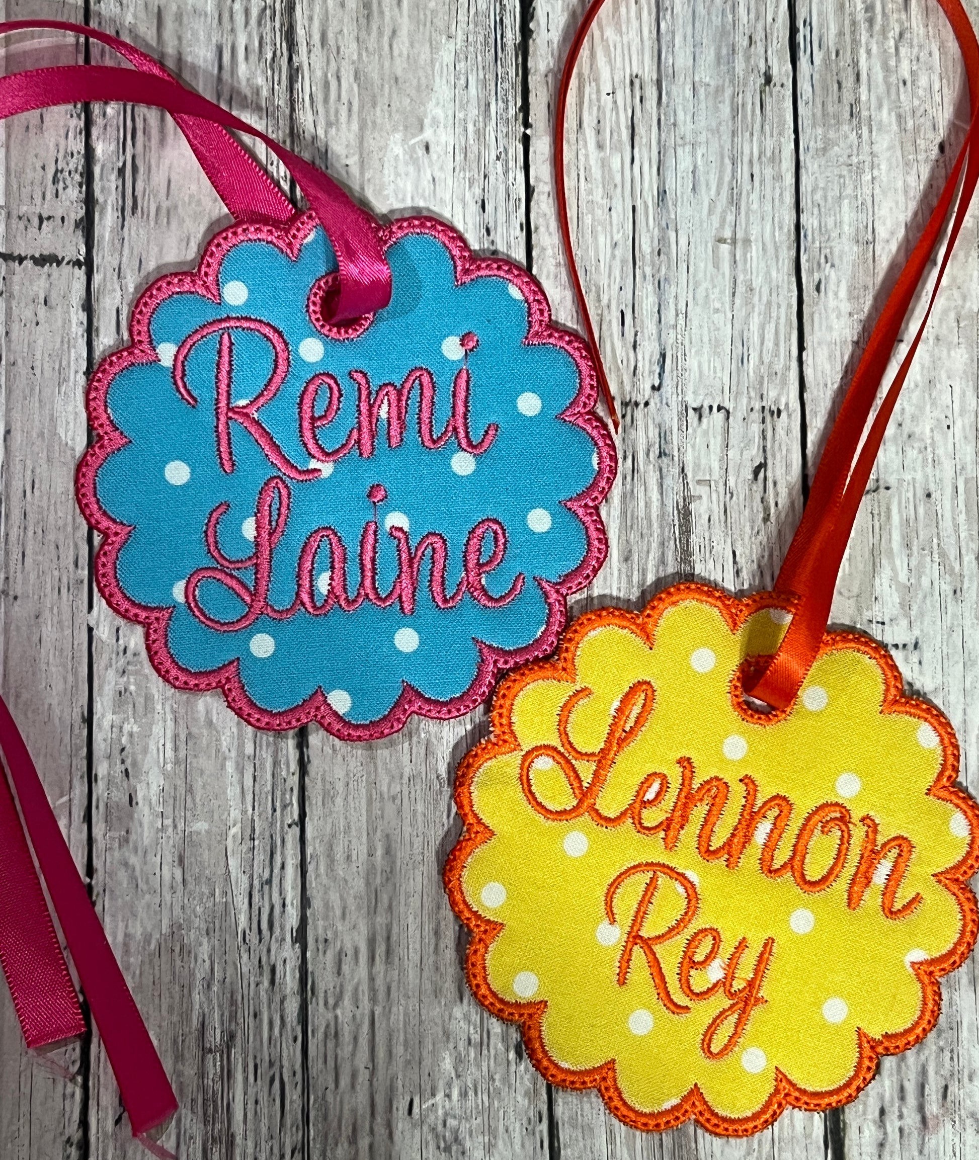 These are custom bag tags grest for school bags, gym bags, sports, diaper bags etc. Each one is made to order after purchase, please include in the notes EXACTLY what you’re wanting (color of material, thread color, etc we will reach out prior to stitching to send a proof and font options. Please state way of contact so that we can reach you. We are always available through phone or email or our social media