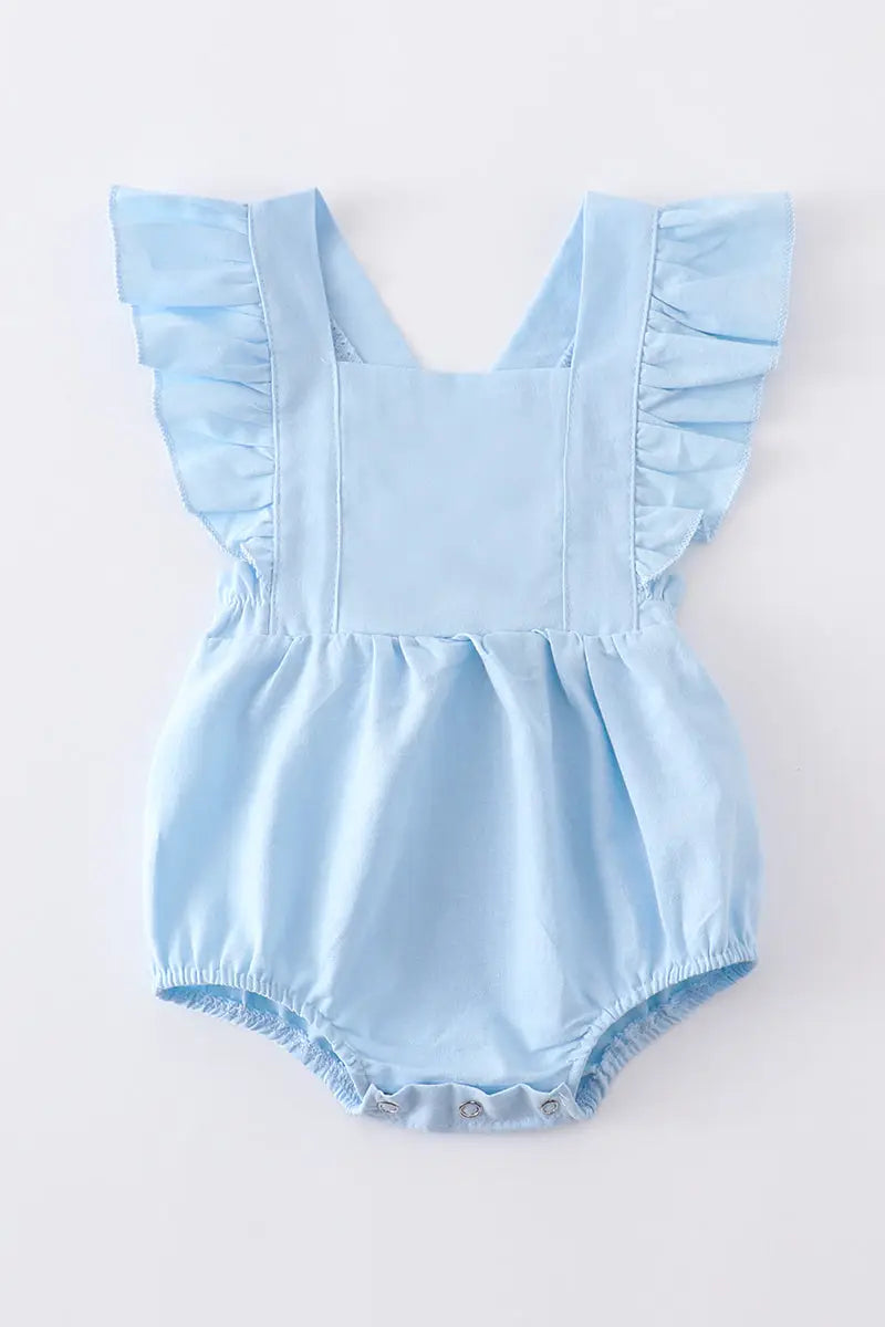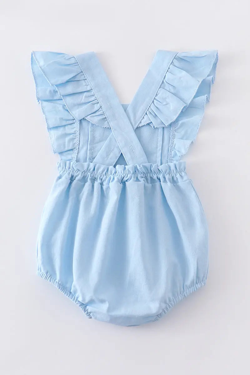 Beautiful flutter trim ruffle girl romper 100% cotton
